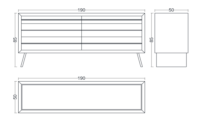 Getextureerde zes-laden ladekast met metalen handgreep accent