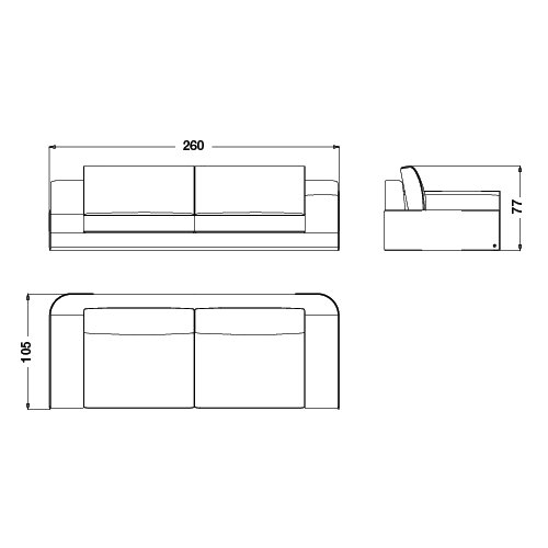 Italiaanse moderne bank | Afmetingen: B 260 cm