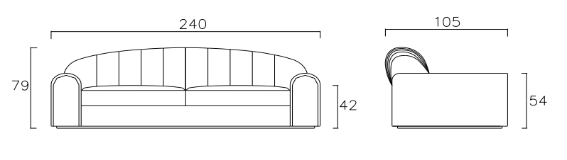 Luxe pluche-ontworpen bank met grote zit 242 cm