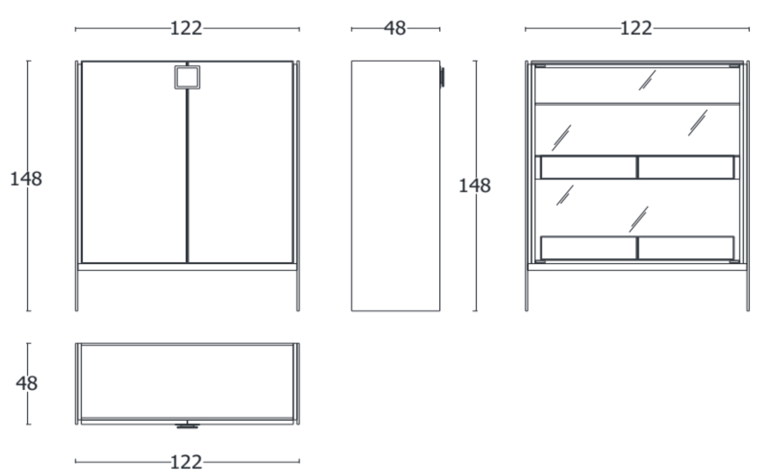 B 122 × D 48 × H 148