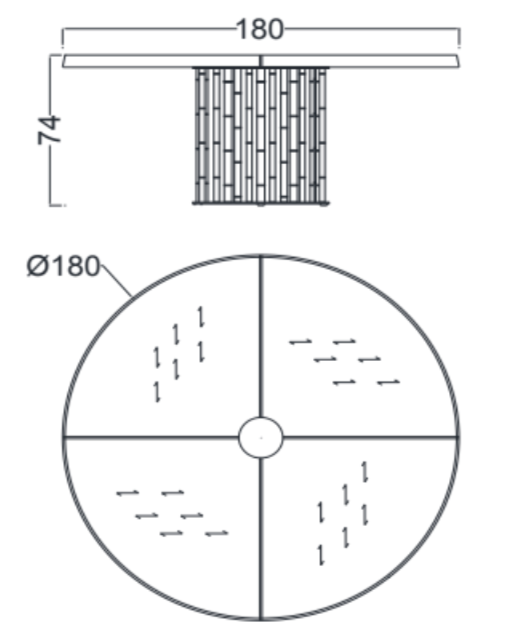 Ronde tafel met glazen blad | Afmetingen: Ø 180 cm