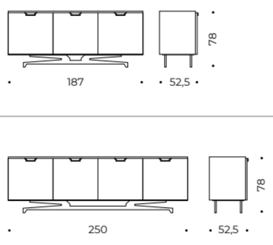 Wall Street Italiaans dressoir | Afwerking: Hoogglans fineer | Afmetingen: B 250 × D 53 × H 78 cm